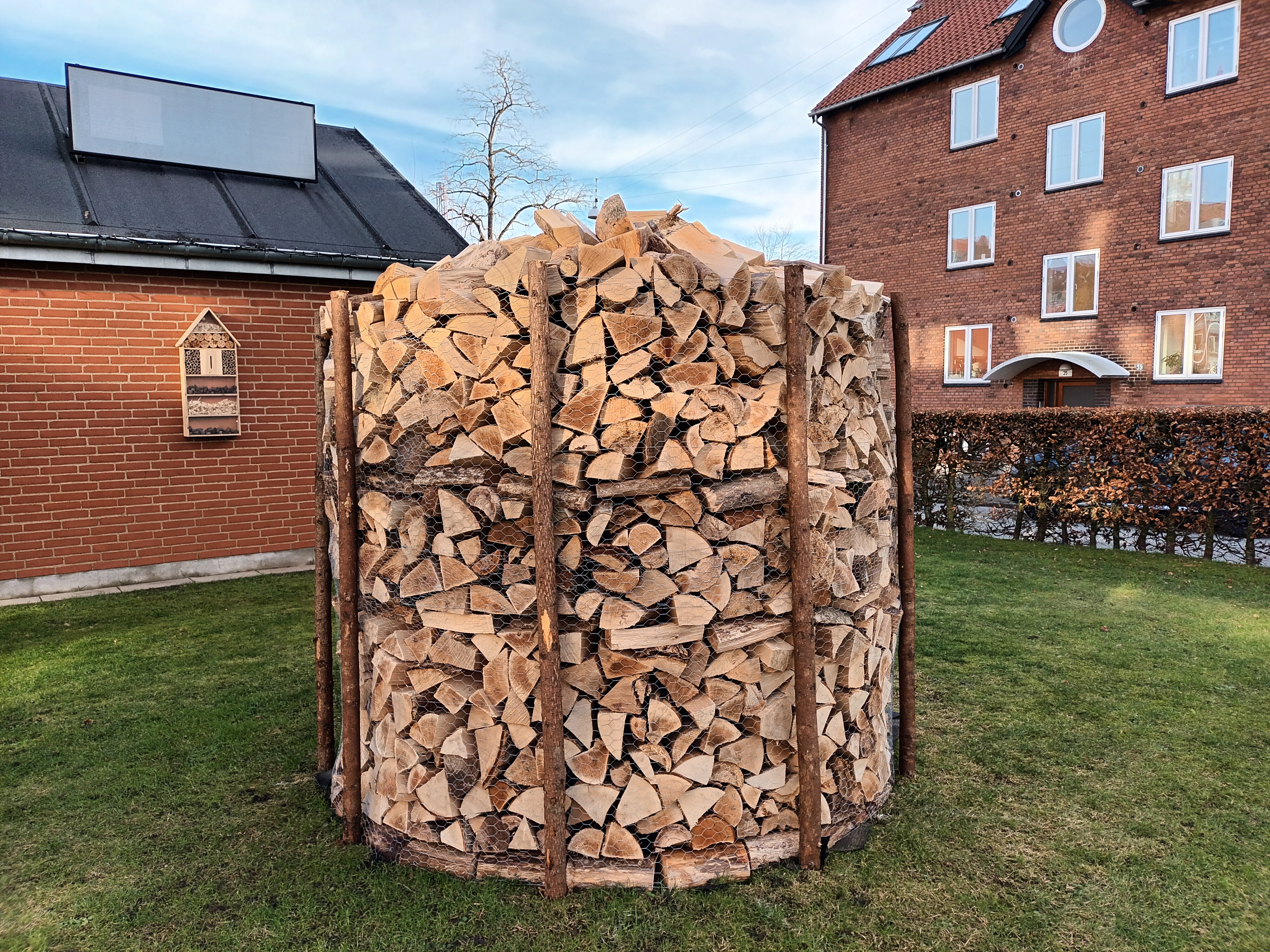 I Lystruplund har vi oprettet en luksus-bolig til insekter og smådyr. Når vi er nødt til at fælde et træ, kan det heldigvis leve videre på en ny måde.